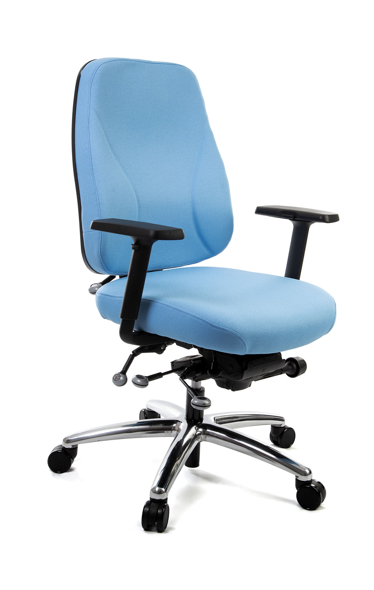 OPERA 20 chairs come with a polished aluminium base and our newly updated pebble levers which deliver a premium look. These levers not only look attractive but offer enhanced ergonomic benefits. Operational instructions are easier to see and the pebble shape makes the levers easier to handle, which is ideal for people with health problems that affect their hands and arms.